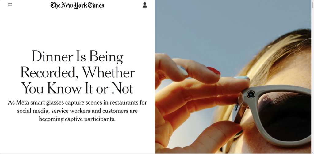 We were quoted in the The New York Times yesterday in an article entitled “Dinner Is Being Recorded, Whether You Know It or Not,” which revolved around privacy concerns while dining out in the face of consumer tech like Meta Ray-Ban glasses — which enable innocuous recording — beginning to proliferate. The quote blurb: